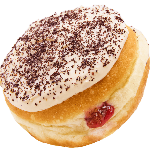 Ein Klassiker der deutschen Backkunst und einer unserer Bestseller: Dieser Donut ist gefüllt mit hausgemachtem Vanillepudding, getaucht in Vanilleglasur und dekoriert mit kandierten Mandelblättchen. Wir verwenden nur echte Bourbon Vanille aus nachhaltigem Anbau.