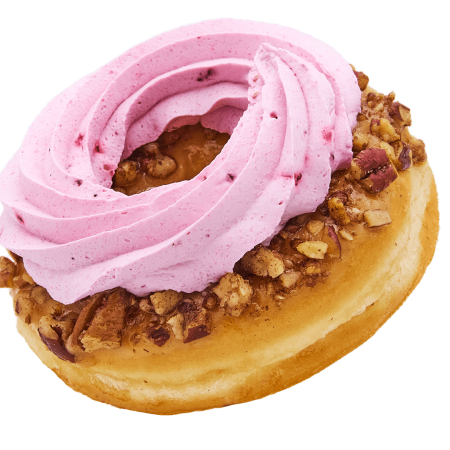 Dieser Donut wurde von unserer Kundin Emi entworfen, die diese Köstlichkeit bei unserem Customer Flavour Contest vorgeschlagen hat. Er ist mit Pistaziencreme gefüllt, mit Vanille-Glasur überzogen und mit gesalzenen, gerösteten Pistazien für den perfekten Crunch getoppt.