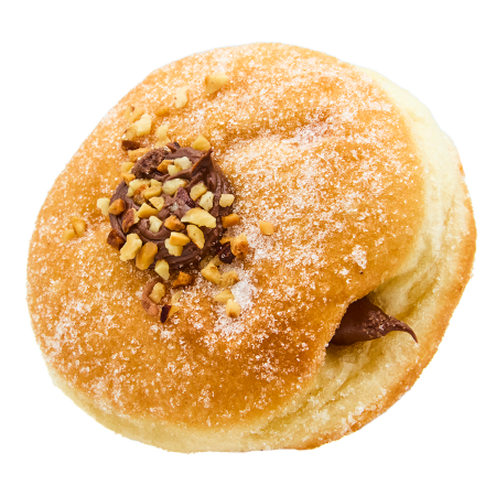 Bomboloni ist zurück! Dieser fluffige Donut ist mit Zucker überzogen und mit einer cremigen Schoko-Haselnusscreme gefüllt. So einfach, aber soooo gut! Kann Spuren von Erdnüssen und anderen Nüssen enthalten.