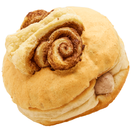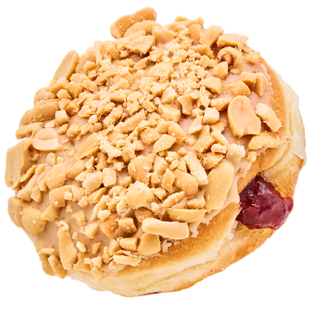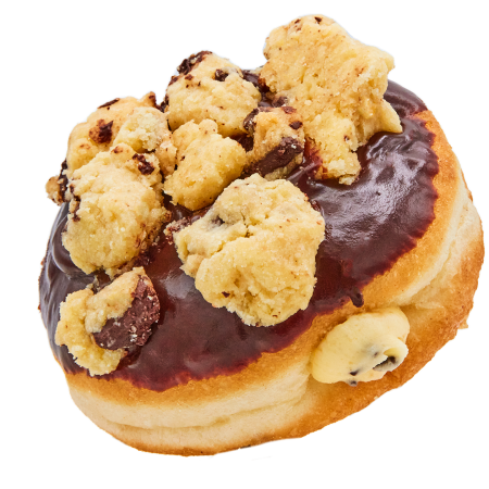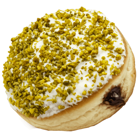This donut is inspired by our customer Emi, who suggested this delightful flavour during our customer flavour contest. It’s filled with delicious pistachio cream, covered with vanilla glaze, and topped with salted roasted pistachios for the perfect crunch.