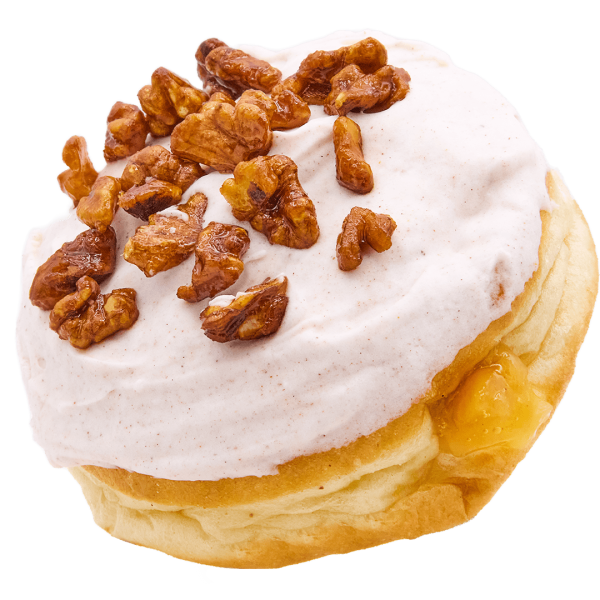 A cosy winter flavour with a fresh twist and inspired by a Swedish cake. This filled donut combines fruity apple filling with a smooth cinnamon Violife cream cheese topping, finished with crunchy candied walnuts for the perfect balance of sweet and spice.