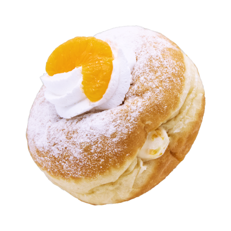 This donut is inspired by our customer Emi, who suggested this delightful flavour during our customer flavour contest. It’s filled with delicious pistachio cream, covered with vanilla glaze, and topped with salted roasted pistachios for the perfect crunch.