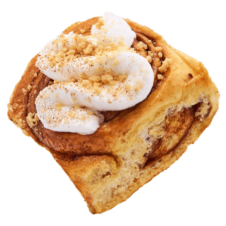 A fluffy donut with autumnal caramel-apple filling at its core. Glazed in sweet caramel, rolled in brown sugar crumble, and finished with a dash of silky caramel whip. Taste like a homemade autumn dessert in donut form.