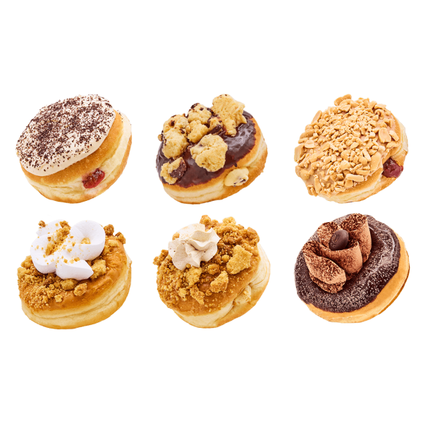 Who wouldn’t want to eat the donuts Bram loves? This box is perfect for everyone who want a selection of flavours and doesn’t want to choose. It contains 6 of our all-time favourites: Boston Cream, Cinnamon Sugar, Bienenstich, Pistachio Dream, Apple Caramel and Mousse au Chocolat.