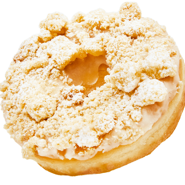 Inspired by the beloved holiday cookie: a fluffy ring donut dipped in vanilla glaze, covered in buttery Vanillekipferl crumble, and dusted with delicate powder. Simple and so good.