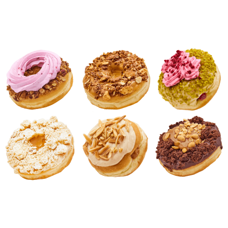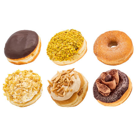 Who wouldn’t want to eat the donuts Bram loves? This box is perfect for everyone who want a selection of flavours and doesn’t want to choose. It contains 6 of our all-time favourites: Boston Cream, Cinnamon Sugar, Bienenstich, Pistachio Dream, Bratapfel and Mousse au Chocolat.